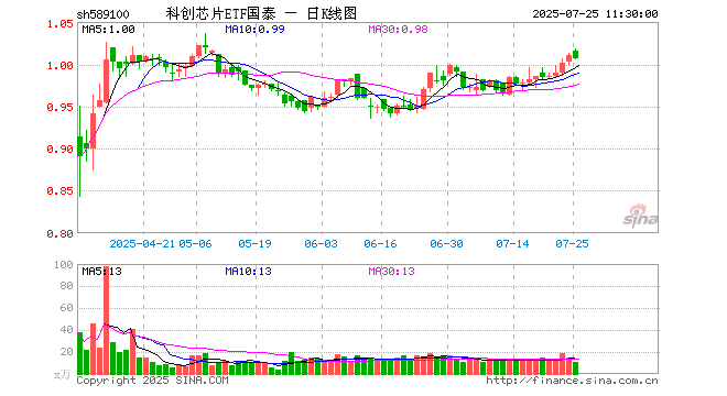 科创芯片ETF国泰(589100)业绩比较基准为上证科创板芯片指数收益率,管理人为国泰基金管理有限公司,基金经理为麻绎文,成立(2025-03-26)以来回报为1.23%,近一个月回报为4.33%。